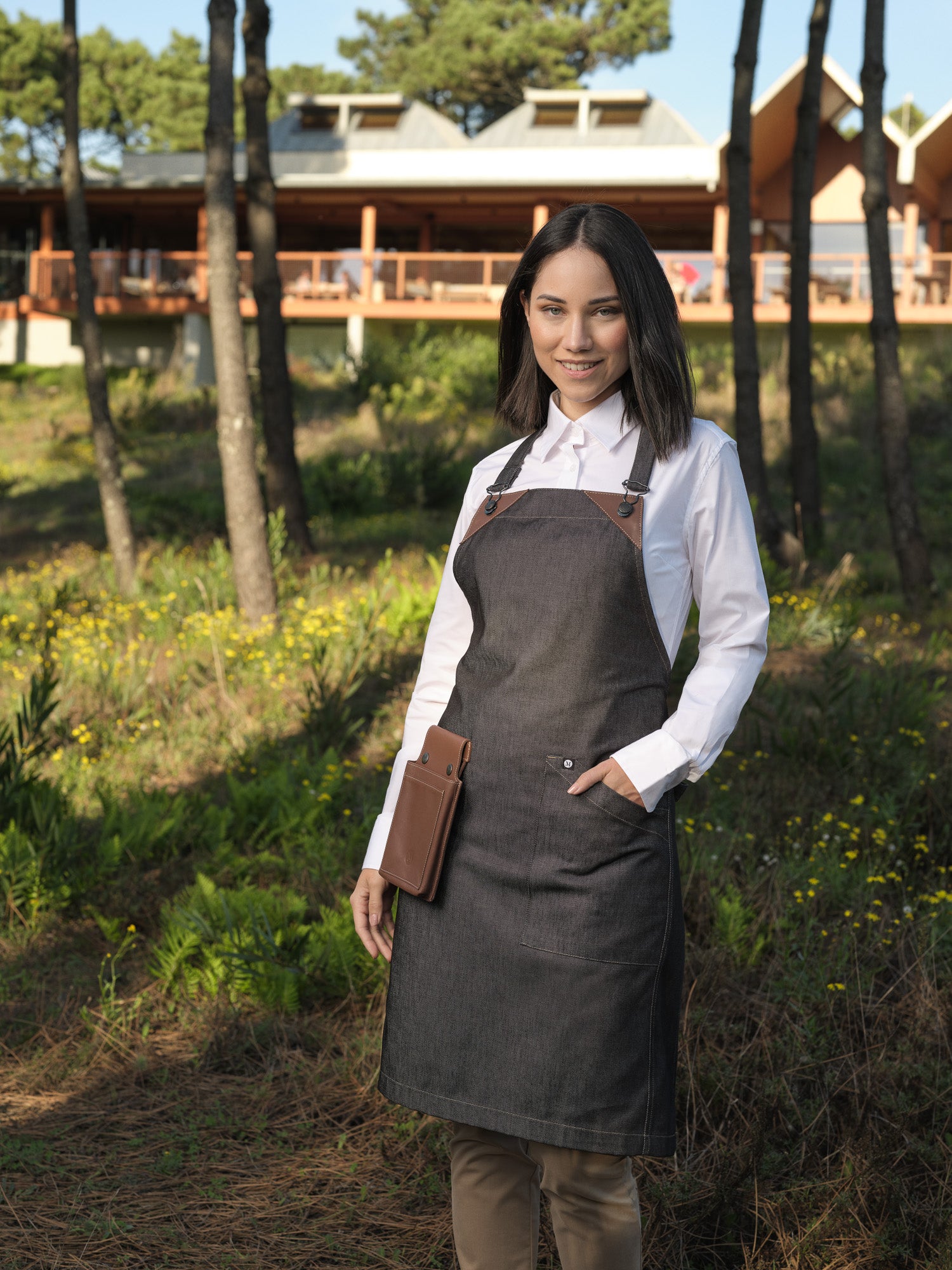 Delantal Corto Universe Camel Oscuro